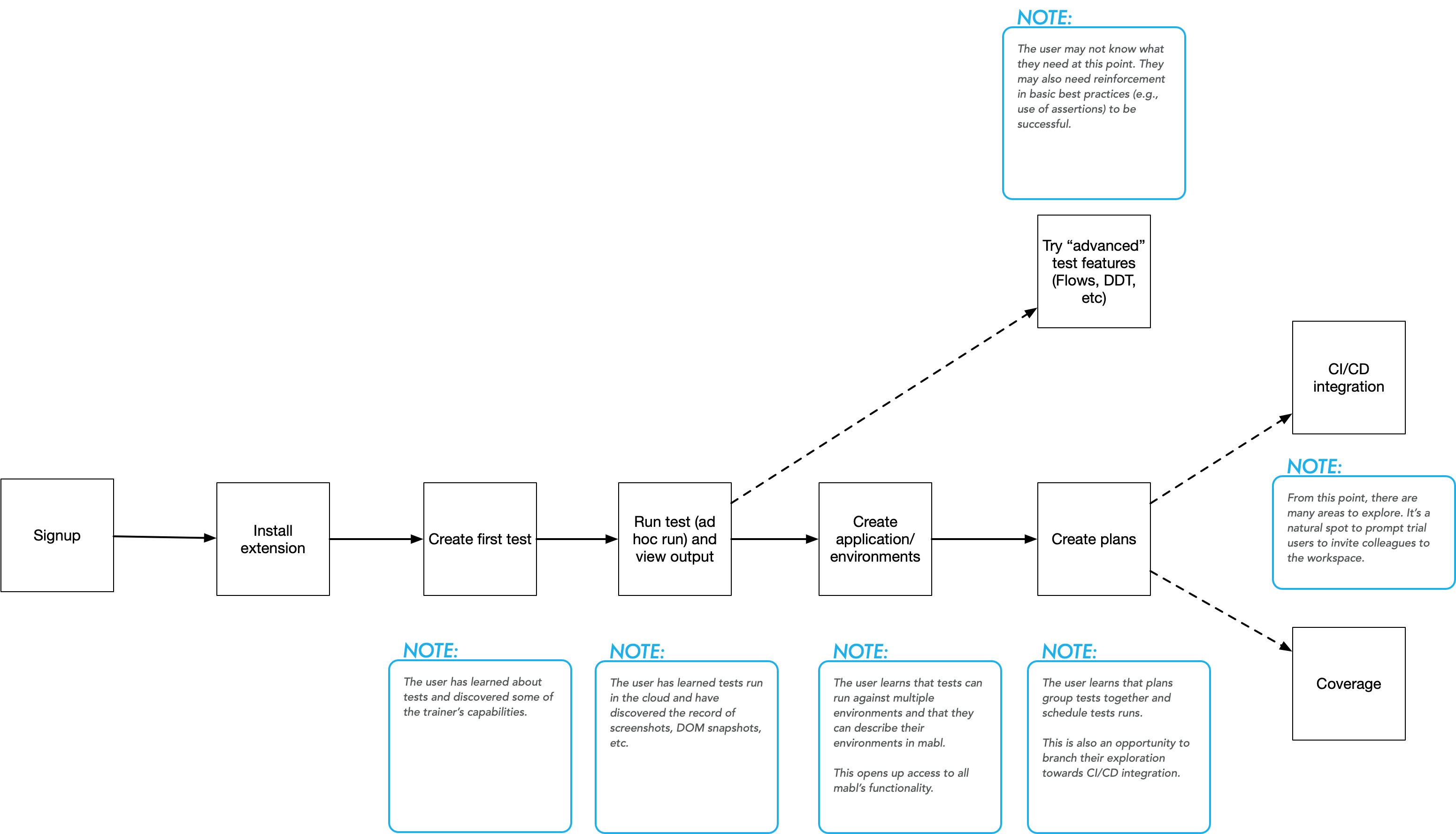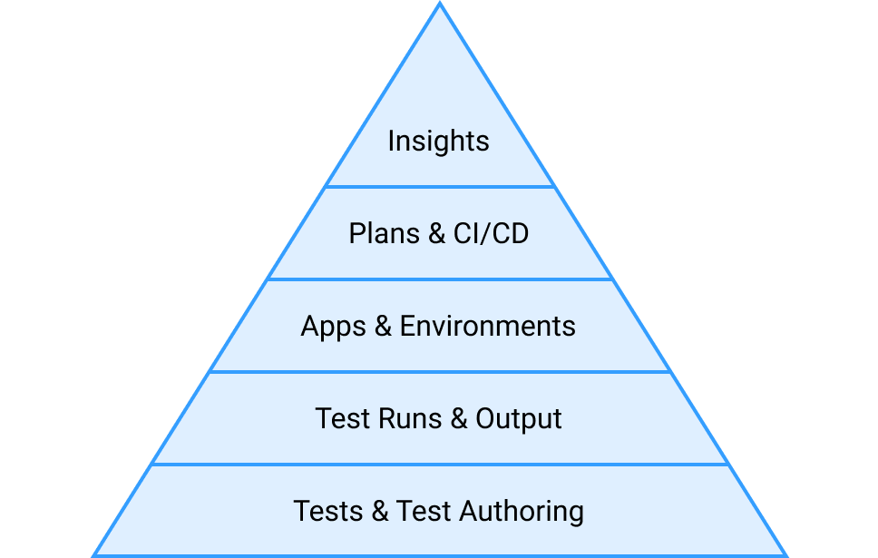 With plans out of the way, I redesigned the new user journey to introduce mabl’s concepts as shown in the pyramid. I incorporated learnings from our earlier experiments and set these design goals: