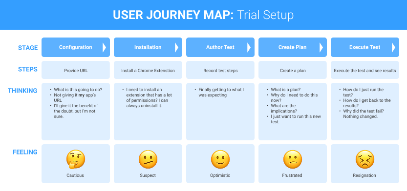 This continuous learning paved the way for the redesign. mabl’s fundamental problem was that new users hit a wall of new concepts that needed to be learned all at once to do even the most basic task. I needed to redesign the product’s conceptual model in conjunction with smoothing out the new user journey.