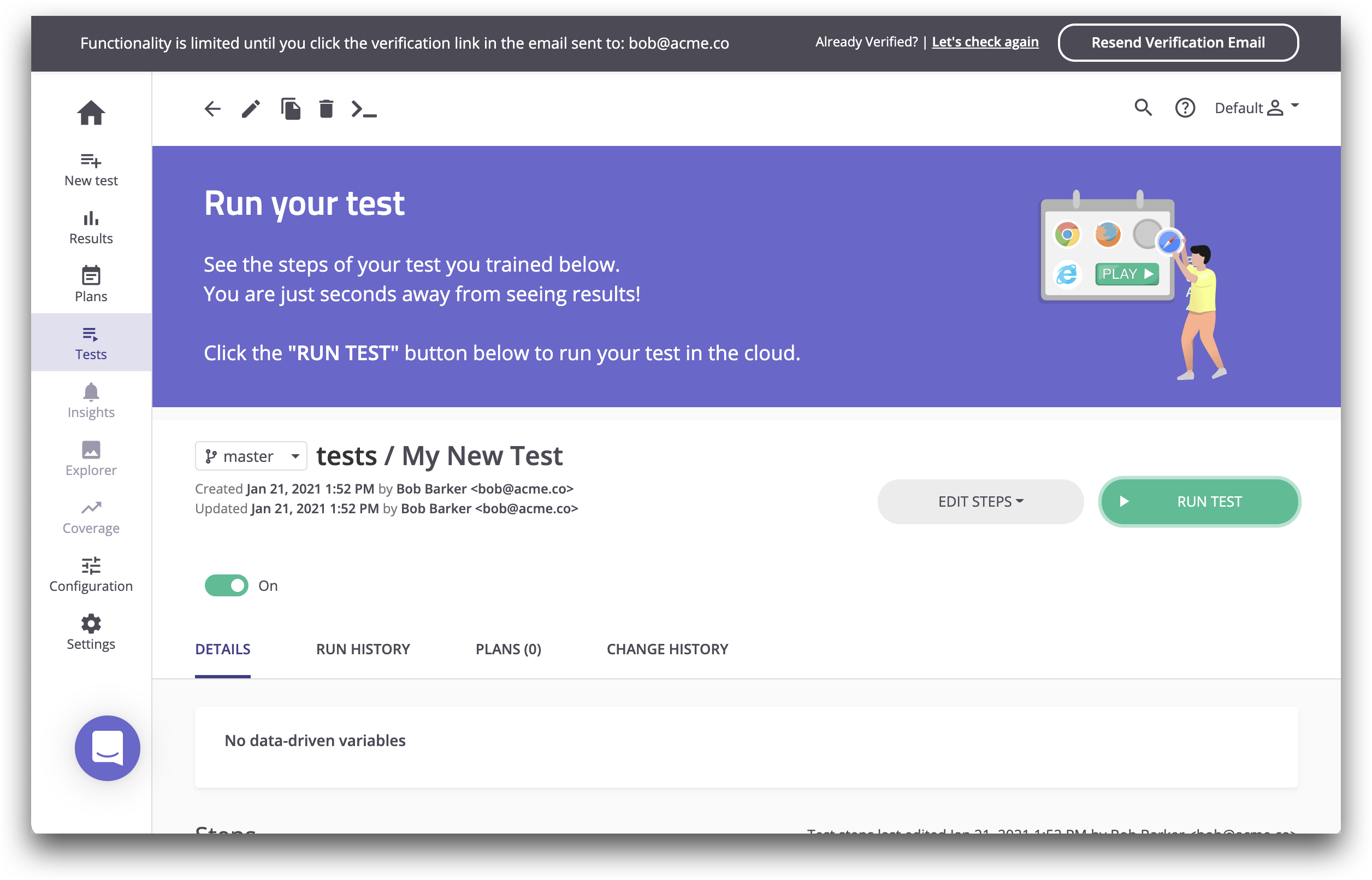I designed a simple UX enhancement enabling independent test runs and, more importantly, worked with engineering to break the underlying dependency on plans. This product update benefited existing customers immediately and set us up for the next stage.