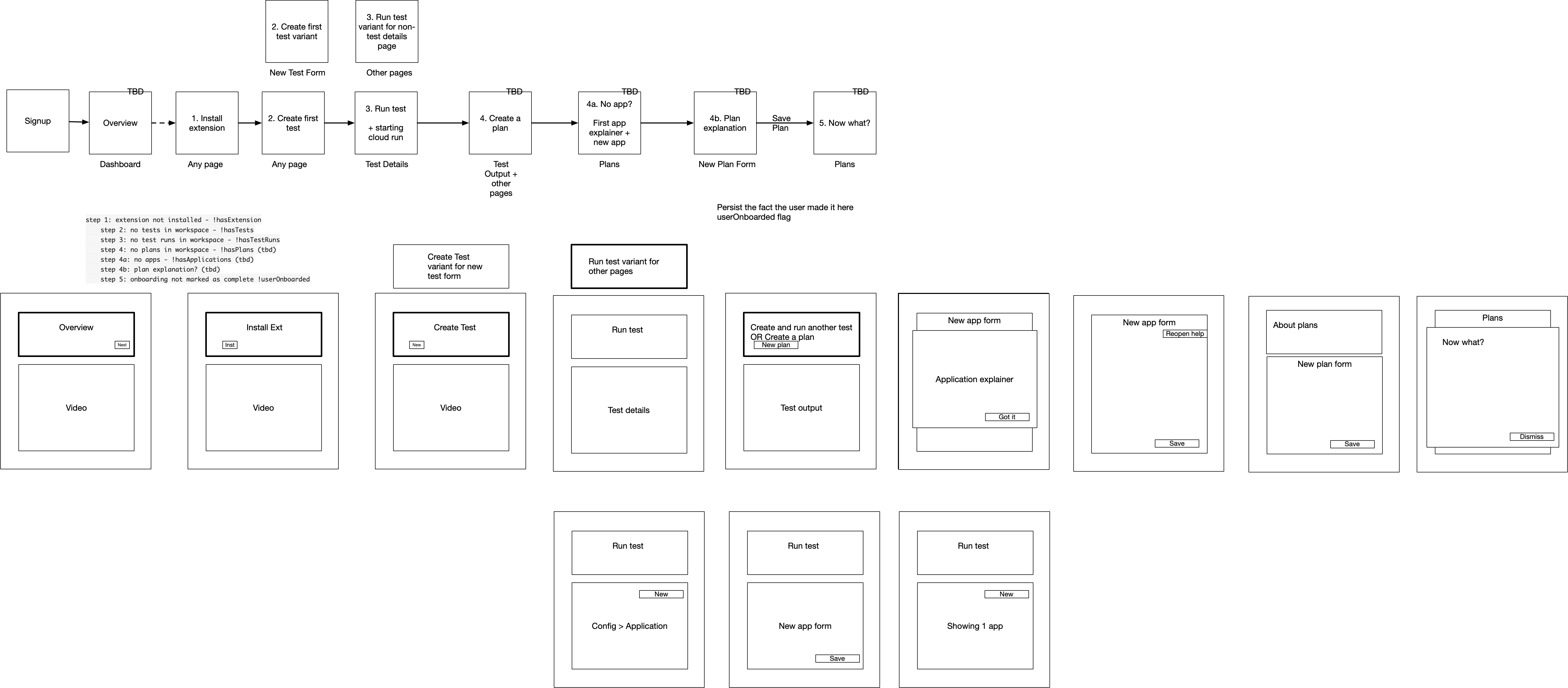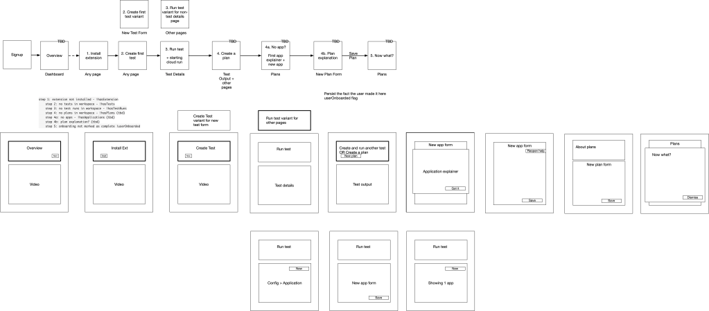 These wireframes outlined where on-screen guidance appears for each on-boarding state.